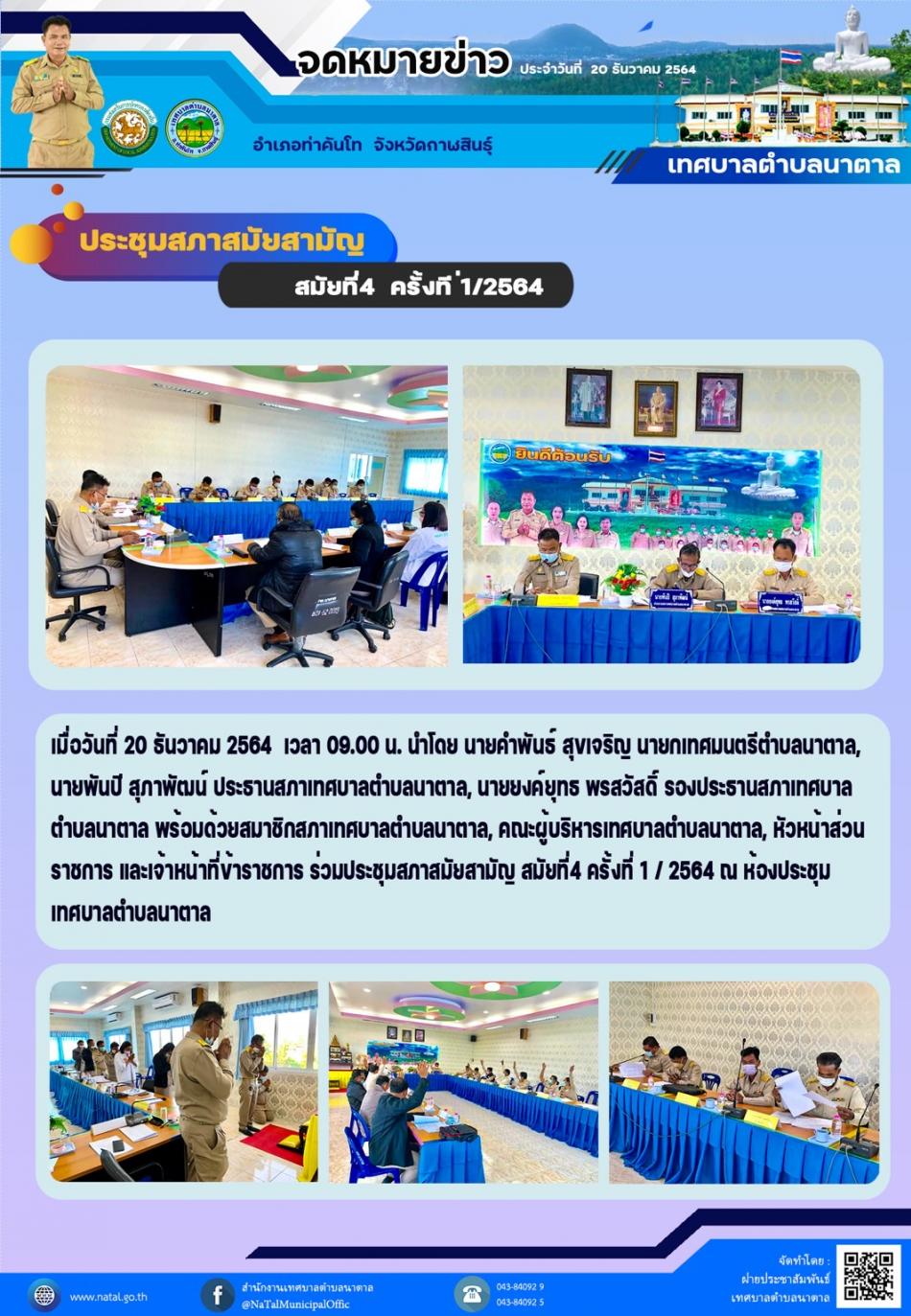 ประชุมสภาสมัยสามัญ สมัยที่4 ครั้งที่1/2564 [20 ธันวาคม 2564]